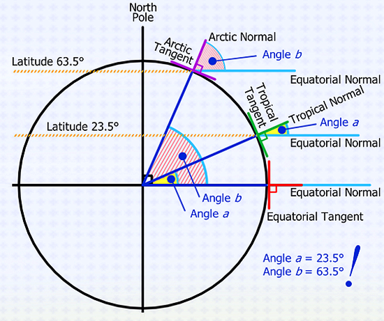 Angles. At the very edge of the hole, the sun would be virtually overhead. The further away from that center point, the greater the angle at the sun’s highest point.