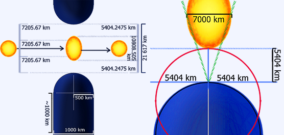 Conditions would be at their worst at the midpoint, at Noon. The diagram above depicts this situation and shows that the solar surface would be just 5404 km away.