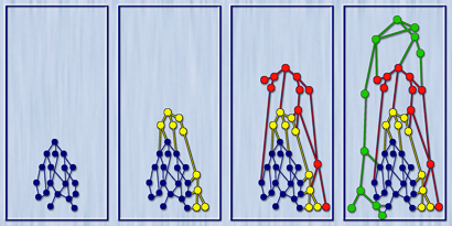 This symbolically depicts the process of Step 5 in four panels, each depicting an additional step backwards in time.