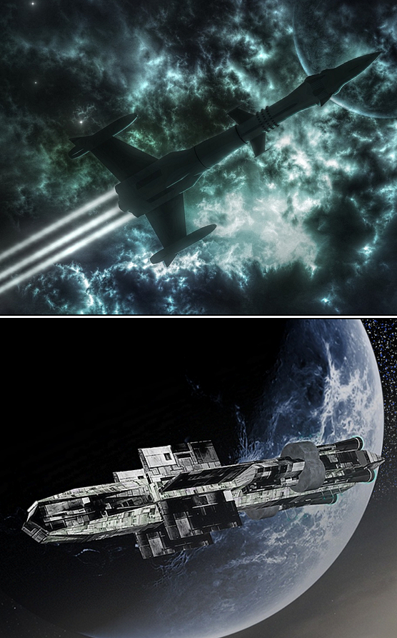 Both of the spacecraft images below would be suitable as either a base of operations for a group of PCs or as a vehicle for the regular use of a group of PCs, but they convey very different impressions and subtexts. The first image is by Thomas Budach, while the second image was shared by Thomas Budach, both through Pixabay. Images rotated and cropped by Mike.