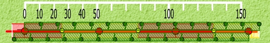So that’s two separate calculations. The ‘road that is a road’ first: There are actually two sections. The longer one runs through Zones 6 and 11, as already noted; it measures out at 15 units long, or 150 miles.