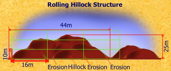 1. Undulating Hillocks – Average Peak Elevation 10-150m, Local Relief <50m; Features 16m (see below).
